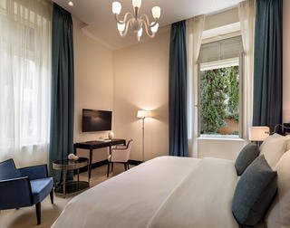 La suite Augusta senza balcone, con 61 m² di superficie, è composta da una camera doppia, un soggiorno e un bagno. Un'eleganza senza tempo arricchita da dettagli lussuosi è l'elemento distintivo di questa suite. La suite è arredata con materiali naturali di alta qualità e mobili pregiati in acero croato. La camera è rivestita con moquette a lavorazione fitta in fibra naturale dalle proprietà antiallergiche e antibatteriche, mentre il pavimento in soggiorno è rivestito in legno. Dal comodo letto potrete ammirare la vista del mare e della baia di Lussino più bella, quella di Cigale (Čikat).